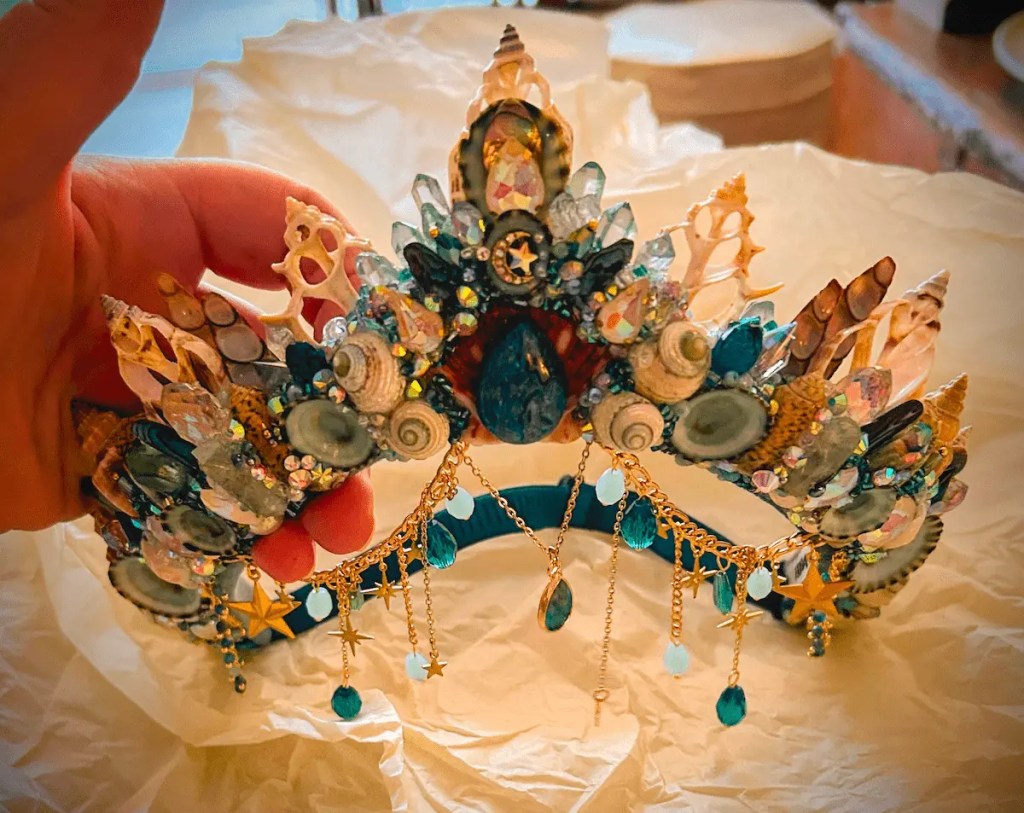 Beyond the pages of the story, the magic of selkie jewelry comes alive through a commissioned piece of one of a kind artwork. Etsy is a treasure trove of artists willing to bring a writers imagination to life. I found an artist, Ellys, whose shop, Frida’s Flower Crowns, was the birthplace of the Selkie Queen’s crown. This artistic interpretation captures the essence of underwater royalty with: